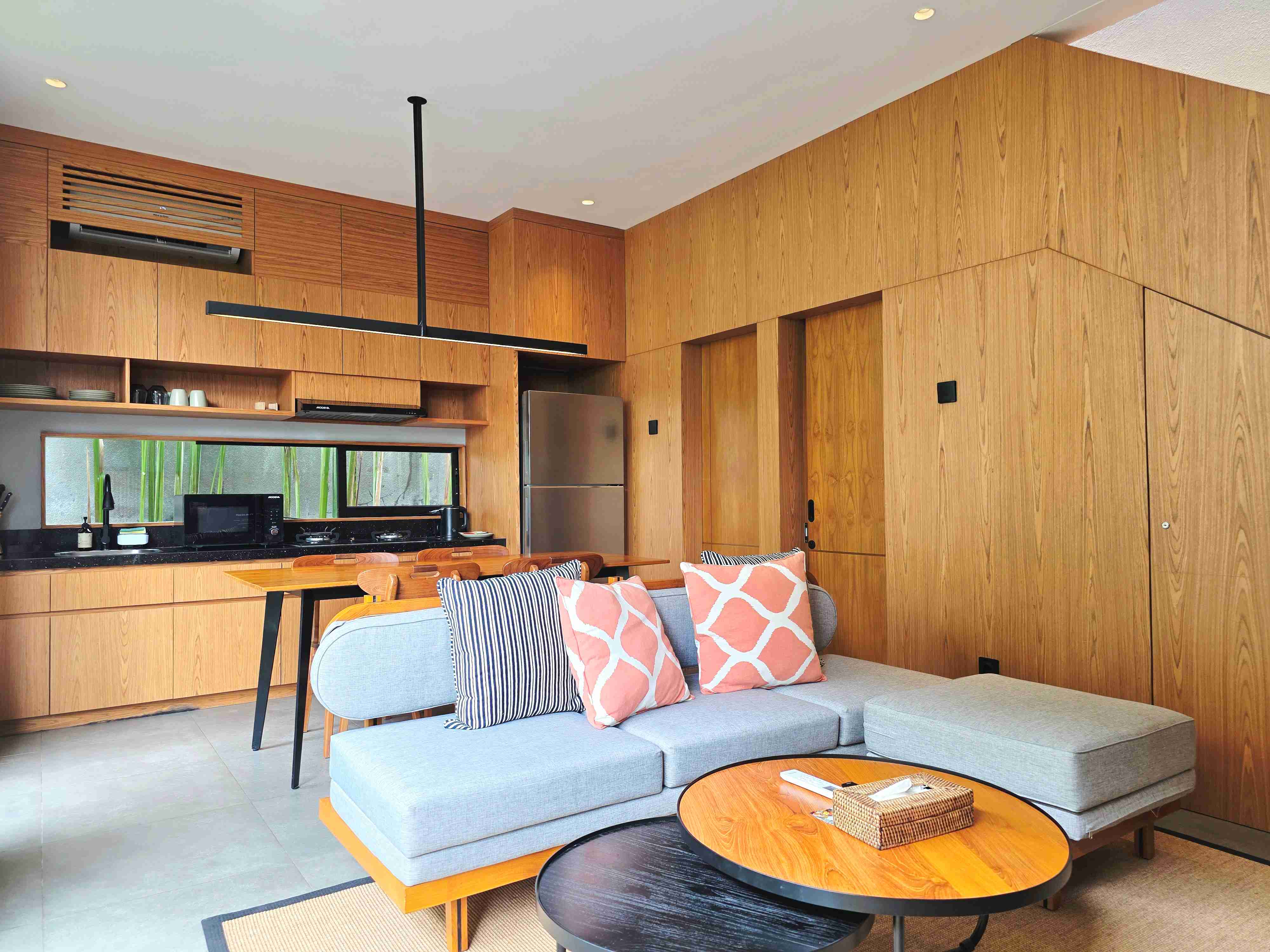 The accommodations here are designed with family comfort and convenience in mind. Take the magnificent two-bedroom residence for example, that offers generous space across two stories. The lower story is ideal for family togetherness, featuring a comfortable living room perfect for movie nights or games, and a handy kitchenette where parents can easily prepare snacks or baby bottles.