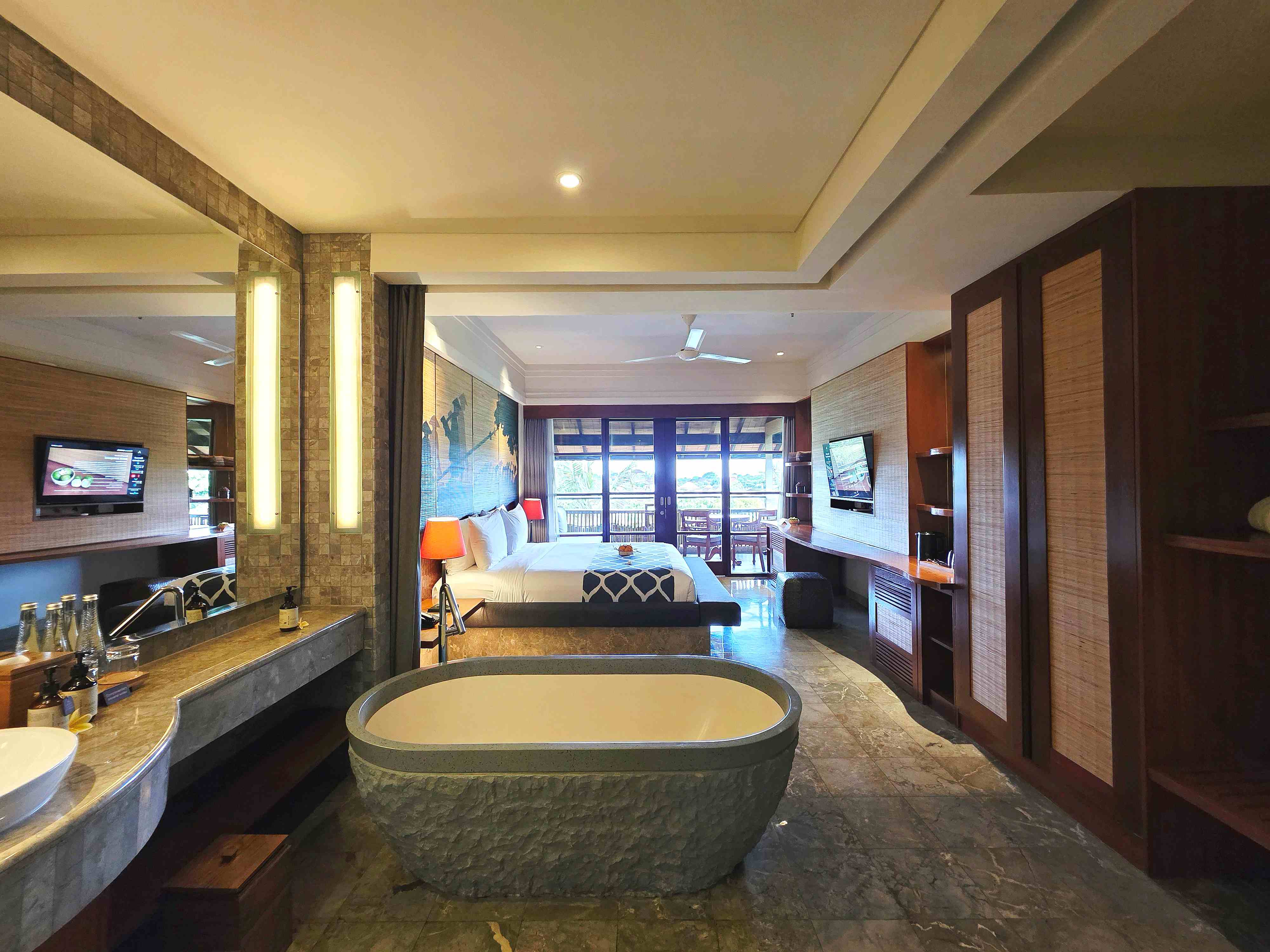 The accommodations are crafted to maximize rest and sensory calm. The Deluxe Room with a Double Bed features a natural aesthetic, highlighted by an awesome stone bathtub ideal for prolonged, indulgent soaking. The private balcony with forest views serves as a natural extension of the retreat space, fostering deep relaxation amidst the lush canopy. Emphasizing personal time, the resort elevates the in-room experience with a special Afternoon Tea served in-room, focusing on light, traditional snacks and teas that are both comforting and tasty.