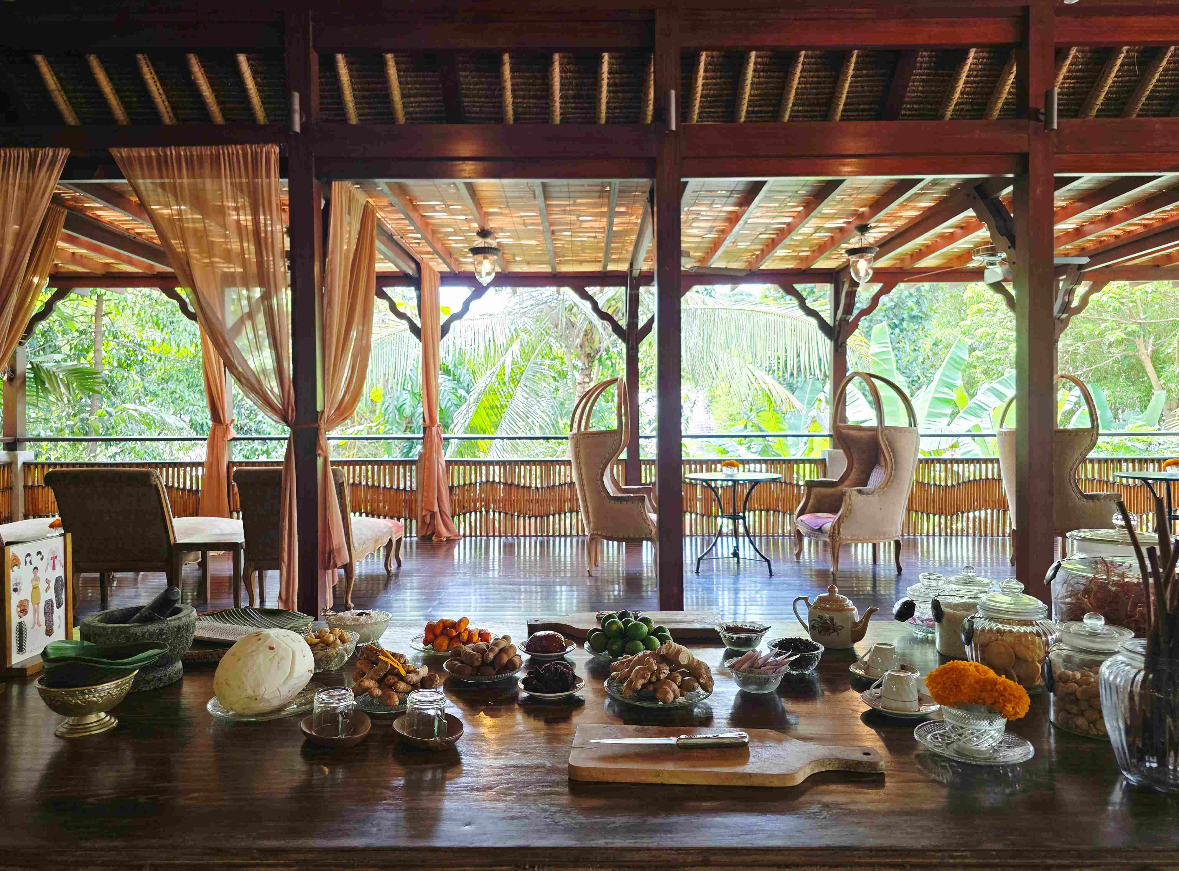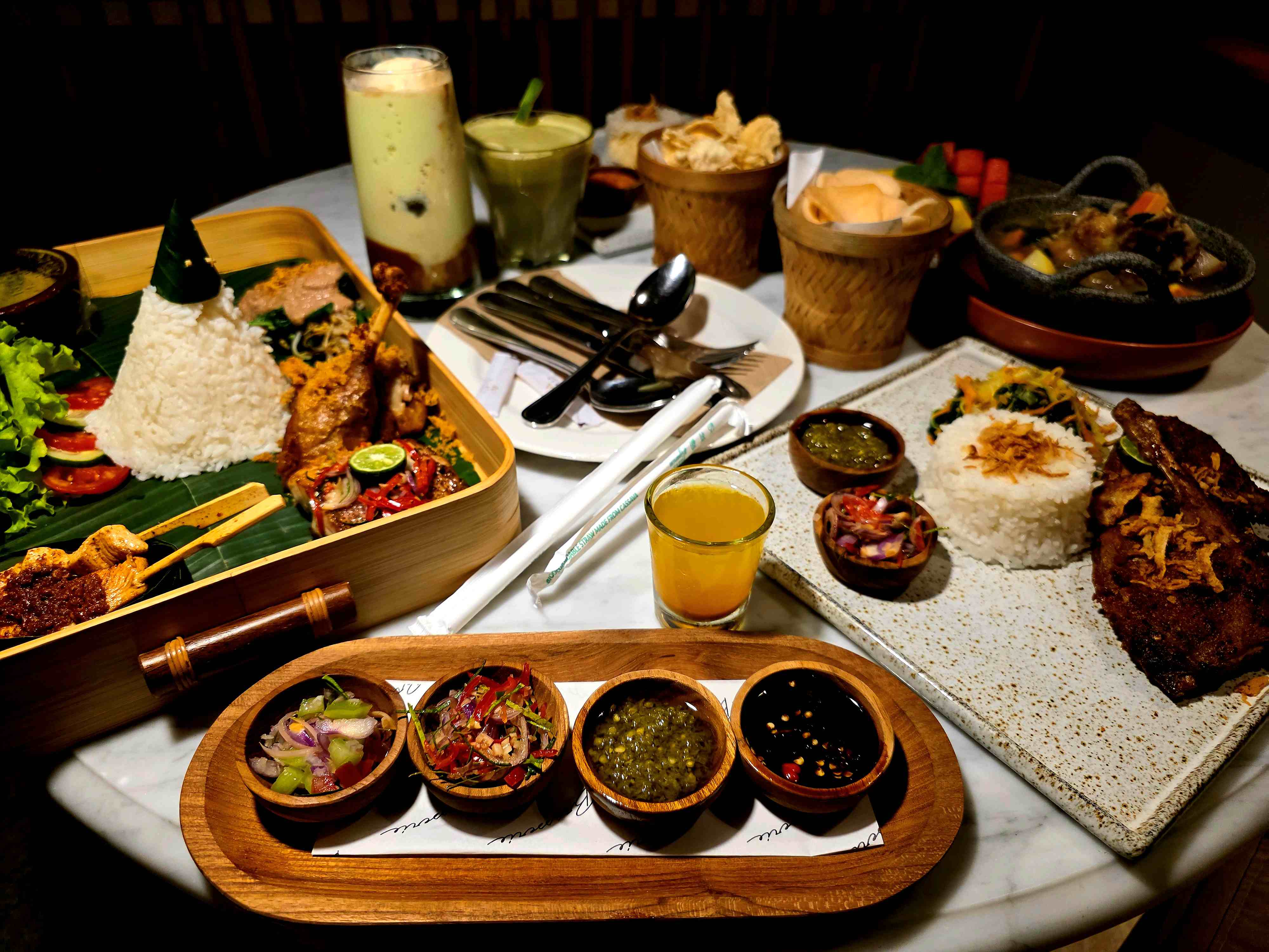 The Brasserie Restaurant anchors the resort’s commitment to food that is both hearty and health-conscious, utilizing fresh, local ingredients. A key culinary experience is the Taste of Harmony set menu, titled “From Bhumi to Brasserie”, offering a nutritional yet satisfying journey through five recipes in one setting, ensuring a balanced intake of diverse local flavors. Traditional dishes are prepared with care: the Bebek Bakar Taliwang, a grilled duck served with the vibrant Taliwang sauce, provides lean protein with complex spice profiles. Another deeply nourishing choice is the Sop Buntut Sapi, a flavorful, slow-cooked Oxtail soup that is rich in collagen and nutrients, offering true comfort food that heals from within.