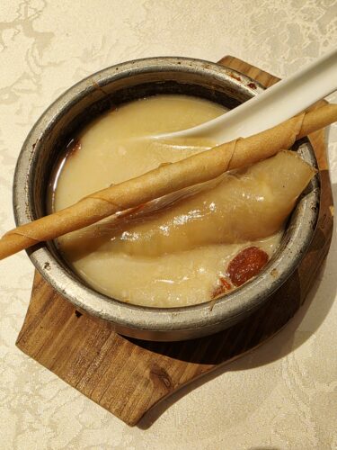 Upstairs at Tien Court, things get fancy with Teochew classics like the Signature Braised White Teat Sea Cucumber in Oyster Sauce—silky, savory, and steeped in tradition. The crispy Teochew-style oyster omelette is worth the wait and don’t miss the Double-boiled Fish Maw Nourishing Soup—it’s like a warm hug in a bowl. It’s a culinary double act that’ll have you planning your next meal before dessert hits the table. The service staff at both dining venues are top notch!