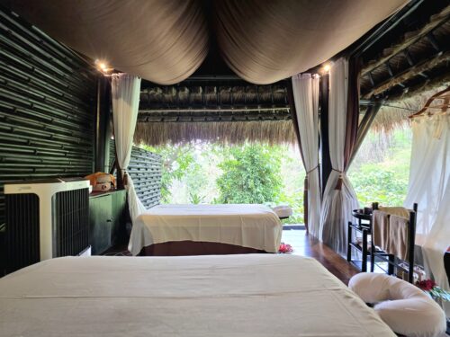 The Golden Triangle Spa offers a rich tapestry of wellness pursuits and immersive wilderness activities. Indulge in a rejuvenating Ruak Bamboo massage amidst the tranquility of nature. This Thai therapy uses carefully selected herbal oils and bamboo batons for a full-body treatment to relief muscles tension and soothe the nervous system with the application of fresh ginger paste along the spine. The semi outdoor location allow fresh forest air and sounds of nature to flow, further enhancing your session. Take a shower in the wooden bathtub before the pampering foot bath to start your treatment on a lavish note.