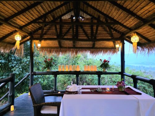 Ushering in a distinct culinary escapade is the Camp Peak dinner, providing breathtaking panoramic views of Laos and Myanmar as you dine under the stars on exquisitely prepared local delicacies such as Nua Phad Kaproaw; skillfully wok-fried beef with garlic, chilli and hot basil (best eaten with fragrant Thai jasmine rice). Each meal is crafted from the freshest local ingredients, promising an authentic and sophisticated taste of the Golden Triangle. Feast on the well curated dishes while taking in the splendid views, especially when night falls and lights in the distance comes on.