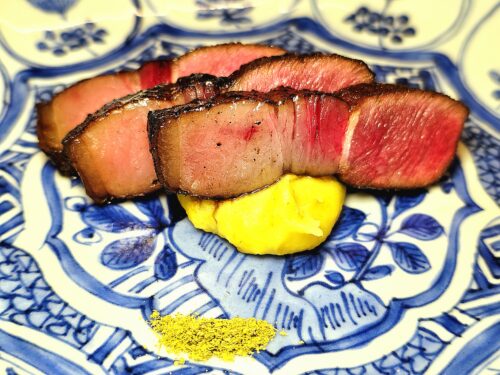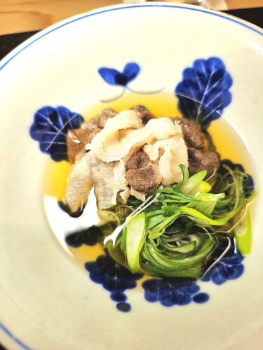 For connoisseurs of game, the Charcoal-Grilled Wild Boar resonates with smoky, primal depth. The chef’s mastery of flame is tested here, as the interplay of fat and lean demands precision to avoid overcooking. The undisputed highlight is the winter Bear Shabu-Shabu: delicate super-thin slices of Tsukino Waguma, (two- to three-year-old adult black bear), gently poached at the table and paired with seasonal vegetables for effortless enjoyment. A true seasonal delicacy, it embodies both finesse and reverence for tradition.