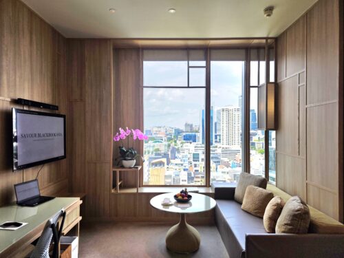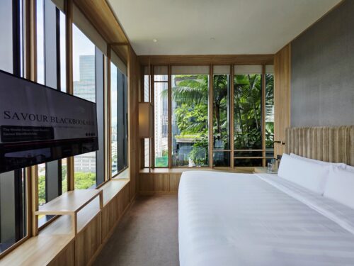 Ready to relax? Check into a gorgeous Lifestyle Suite. These abodes, offer prime views of the city and Hong Lim Park, with the hotel’s signature tiered gardens right outside your window. You’ll get all the modern comforts, from a comfy king bed to your own Nespresso machine, all while feeling totally connected to nature. The spacious living area is ideal for entertaining guests.