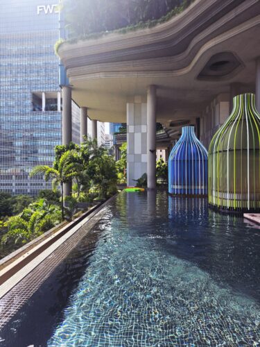 But the real MVP is the Infinity Pool. This isn’t just a place for a dip—it’s a stunning, sky-high runway. Dive into the cool water and soak up the panoramic cityscape. Post-workout, it’s straight to the recovery circuit: chill out in one of the iconic, dreamy bird-cage cabanas over at the pool deck, or slide into one of the tucked-away, bubbling jacuzzis. Surrounded by the hotel’s signature green gardens, it’s the perfect cool-down after you’ve earned that view! Lifts, laps, and luxury recovery—all in one session.