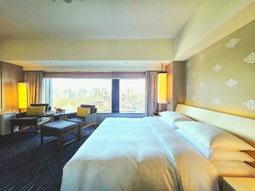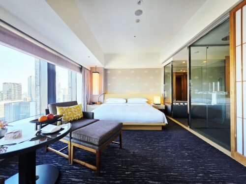 The Club Deluxe King Room is a generous 44.9 square‑meter retreat, where minimalist Japanese aesthetics are seamlessly balanced with vast metropolitan views. Guests of this refined space enjoy privileged access to The Club Lounge “SaRyoh” on the 27th floor—an exclusive enclave dedicated to bespoke service, privacy, and elevated comfort, offering a retreat that feels distinguished.